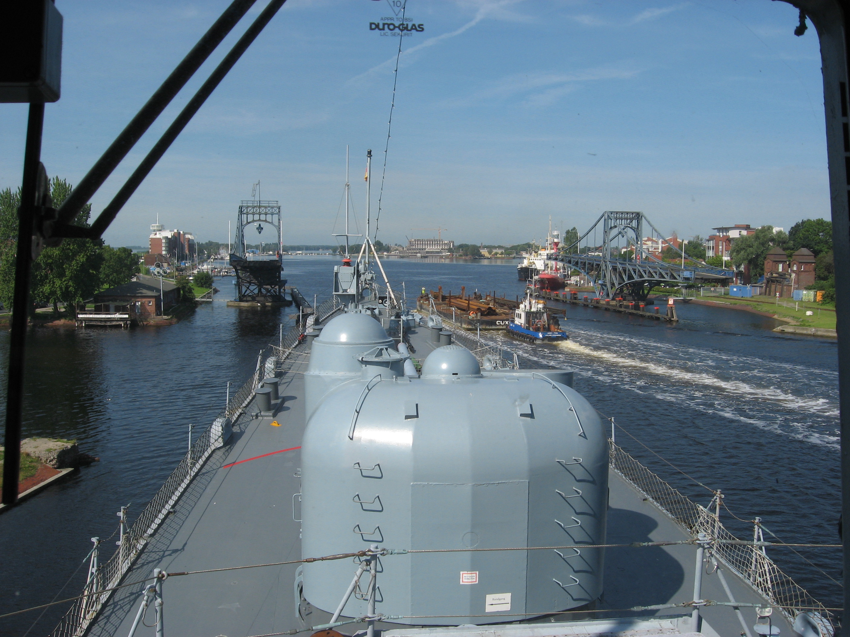 Marinemuseum Wilhelmshaven Juli 08: Blick von der Brücke des Zerstörers Mölder auf offene KW-Brücke