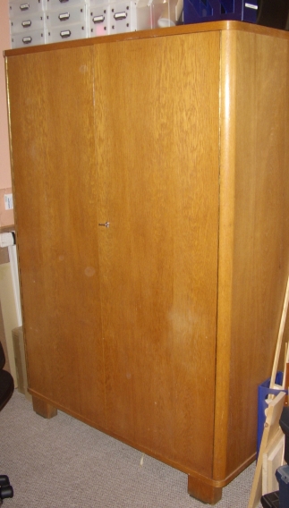 kleiner knuffiger Kleiderschrank, Echtholz, sehr gut erhalten bis auf ein paar Gebrauchsspuren, die sich nun mal im Laufe seines langen Lebens nicht verhindern ließen... Eine Seite vier Einlegeböden, andere Seite zum Hängen. Bei Selbstabholung kostenlos.