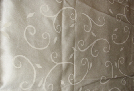 Die edlen Stuhlhussen sind aus einem pflegeleichten, knitterarmen, leicht glänzenden Material in der Farbe creme und in sich gemustert - siehe Foto - 15 Euro für alle vier zusammen