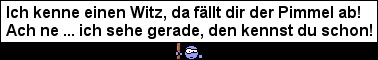 hochgeladen am 31.05.2009 | 585 mal angeschaut | Auflösung: 378x60 Pixel | Dateigröße: 0,01 MB | Traffic: 7,32 MB