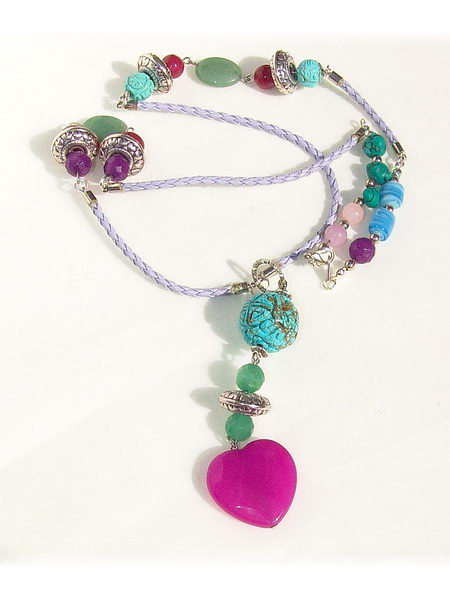 Lederband Collier flieder türkis lila