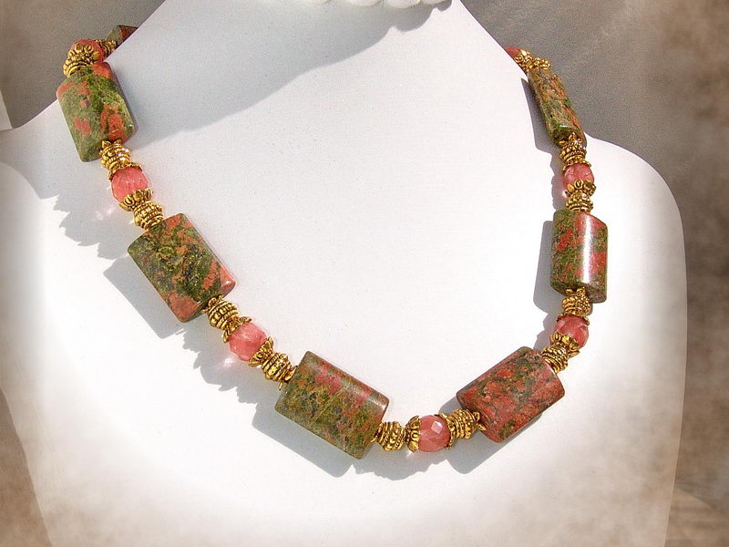 massives Unakitcollier grün lachs