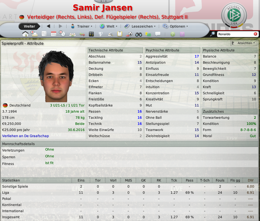 Samir Jansen, Football Manager 08, Winterpause 2012-13