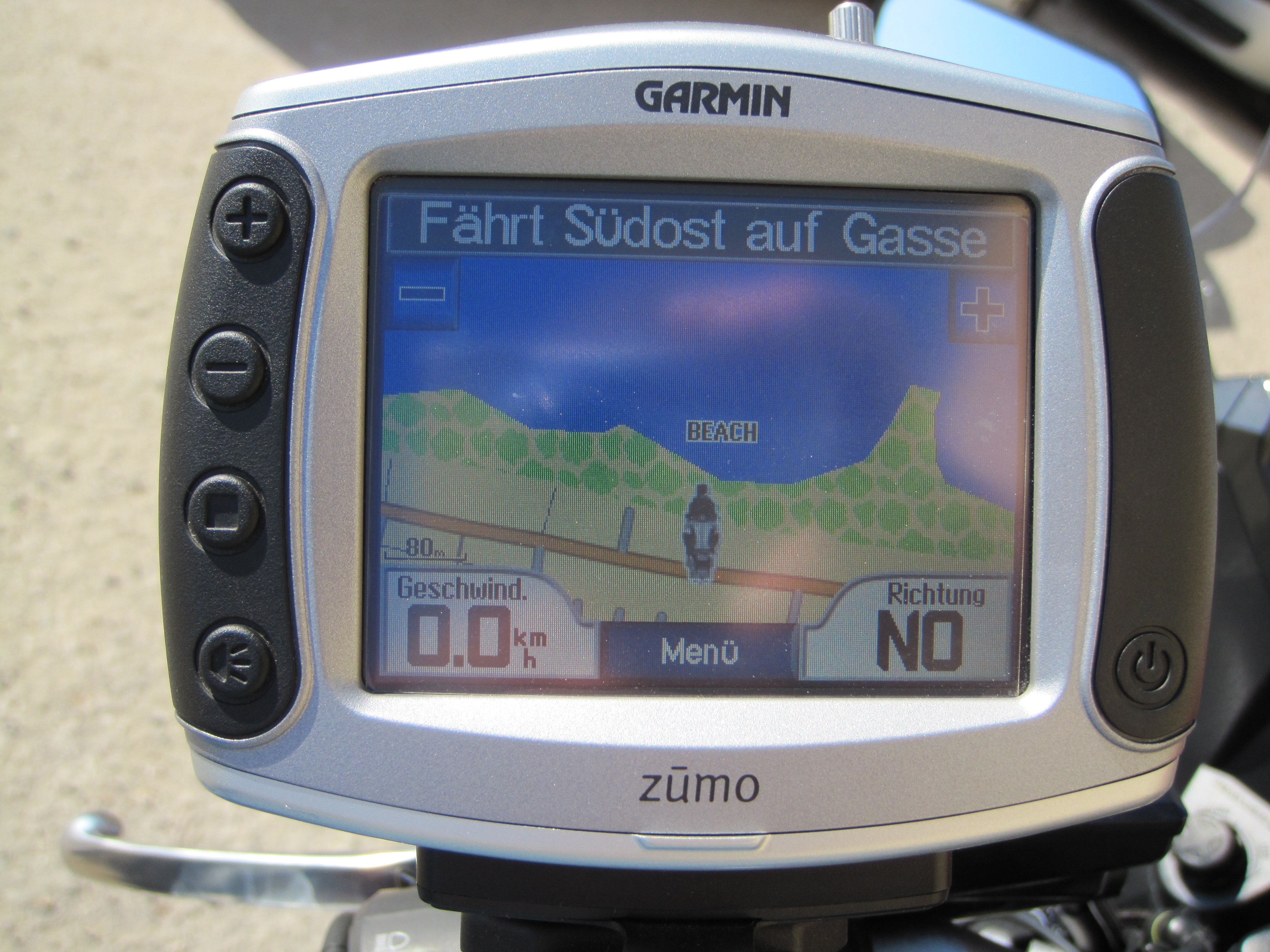 Mein Navi fährt Südost auf Gasse Richtung Beach!