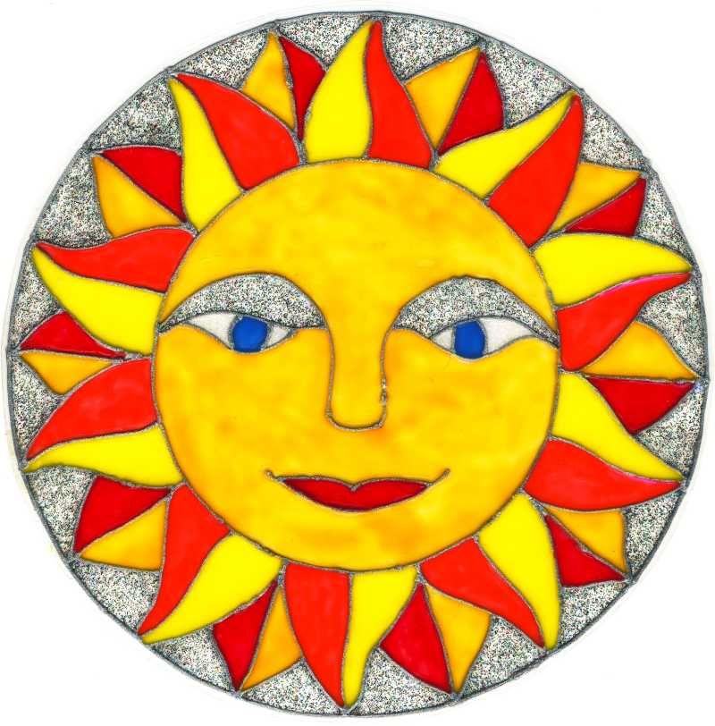 Sonne; Kontur Metallic Silber, Umrandung in Glitzer Bunt