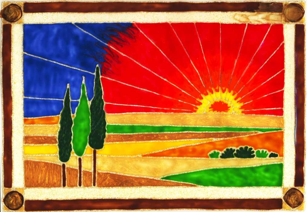 Landschaft im Sonnenauf-/-untergang; Kontur in Glitzergold