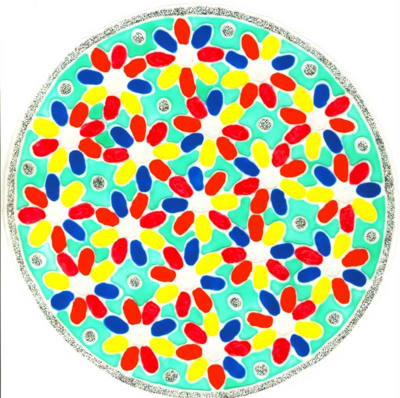 Flower Power Mandala in Orange, Gelb, Rot, Blau und Grün (nicht Türkis!!!); veredelt mit Glitzer Bunt