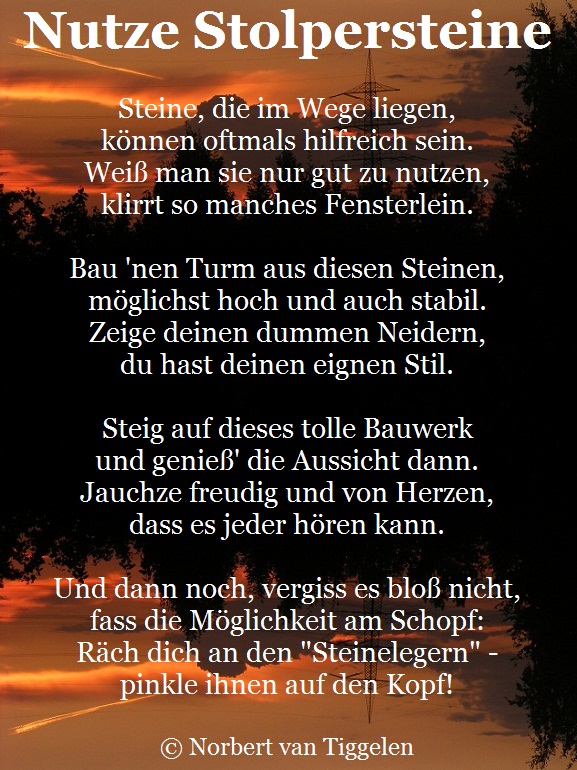 Nutze die Steine, die dir in den Weg gelegt werden
