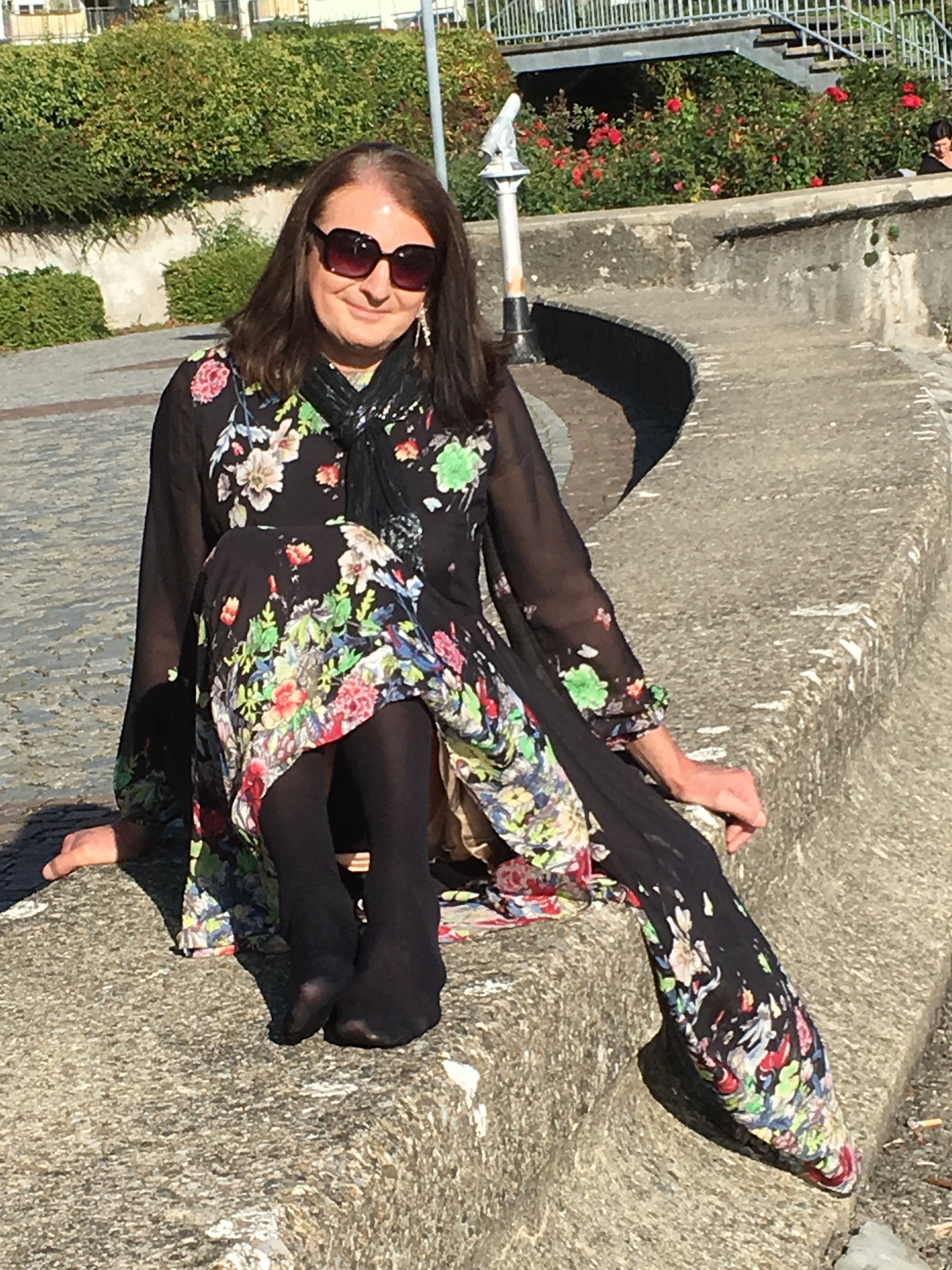 Gabriele Kleid im Sommerkleid an der Promenade