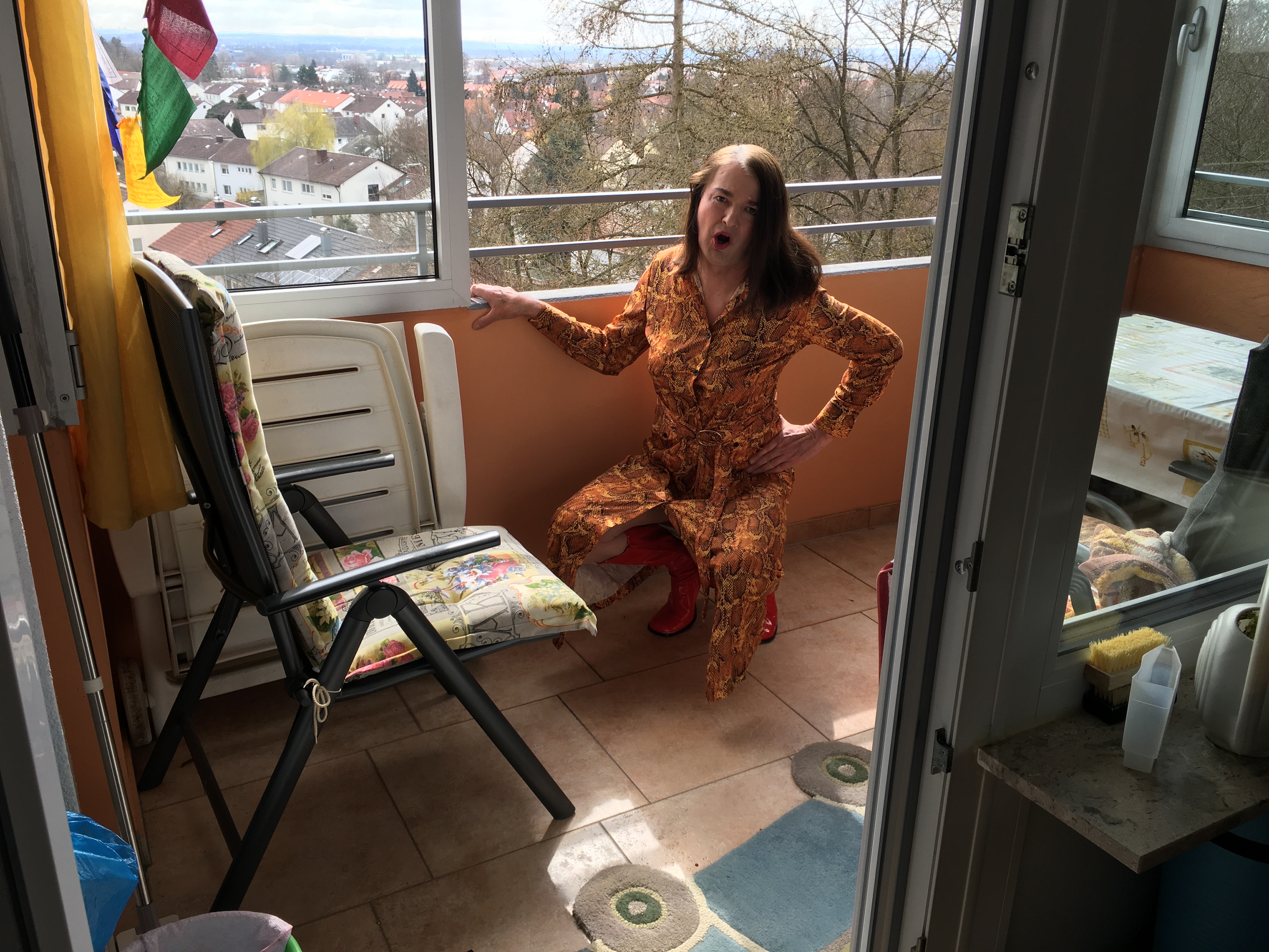 Gabriele im Hauskleid