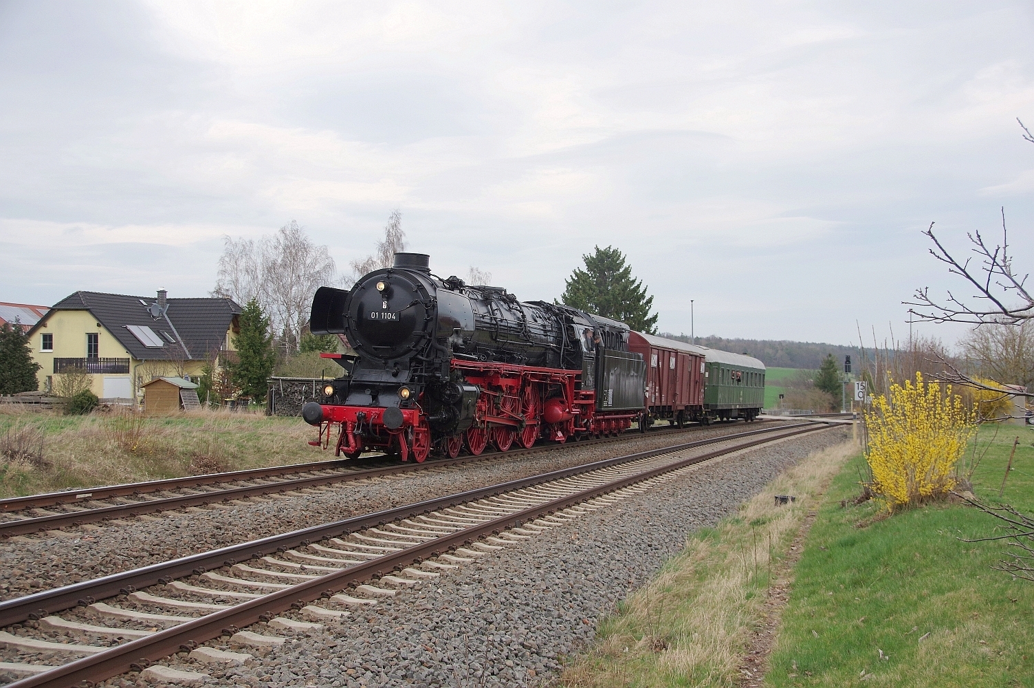 Dampflok 01 1104 (012104) von Faszination Dampf am 22.03.2024 in Großschwabhausen nach Eisenach unterwegs.