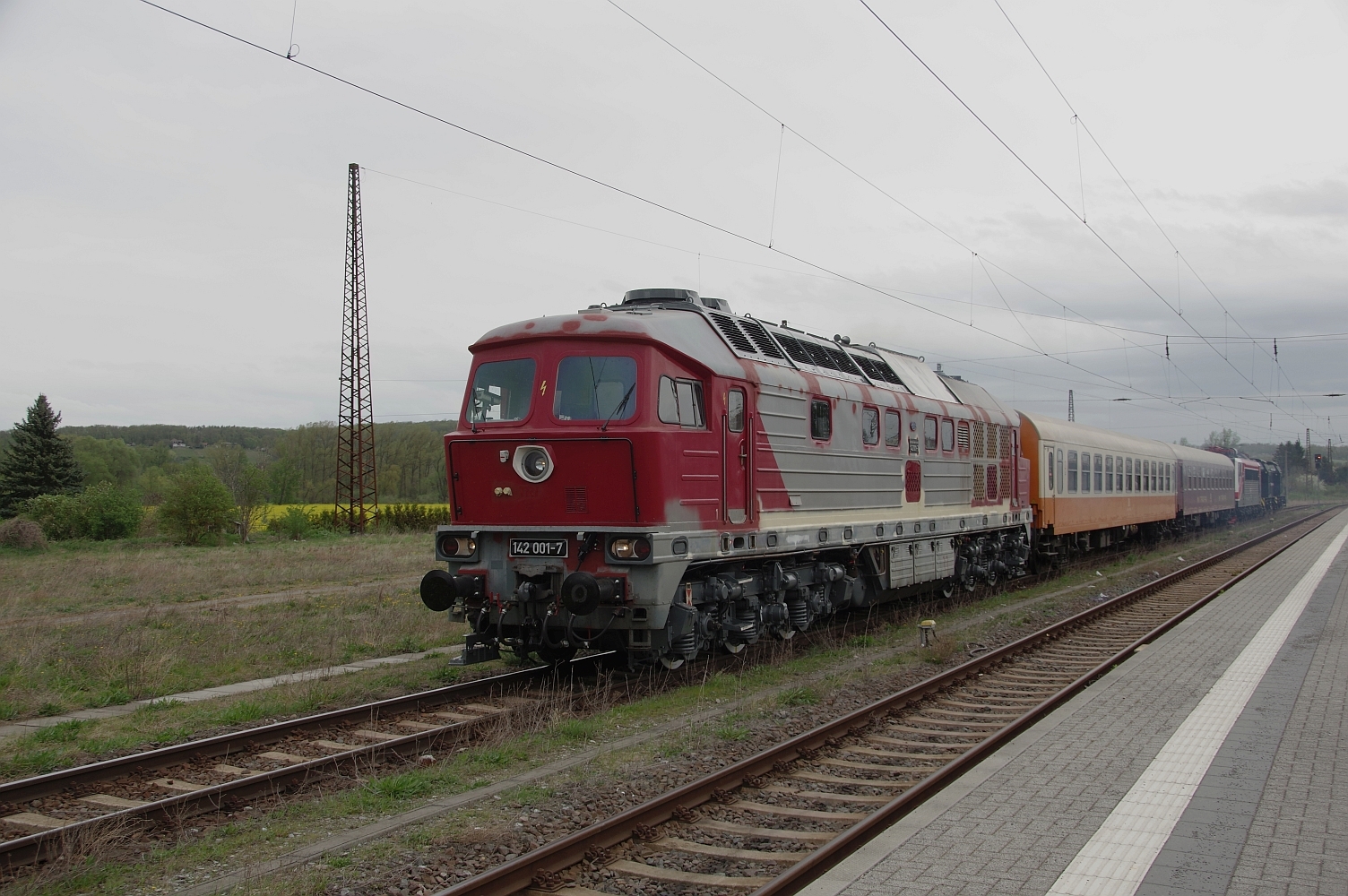 242 001 EBS mit 2 Wagen, 155046, 202597 und 202738 aus Naumburg-Saale Hbf nach Karsdorf am 09.04.2024 p2